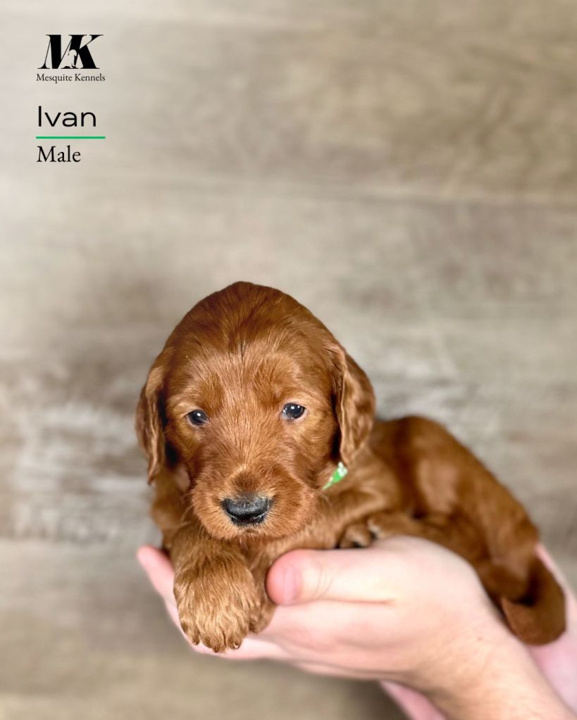 Maple and Maverick had a litter of red standard goldendoodles in February! These pups will be ready to head to their new homes on April 1st!